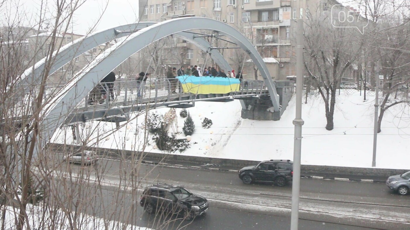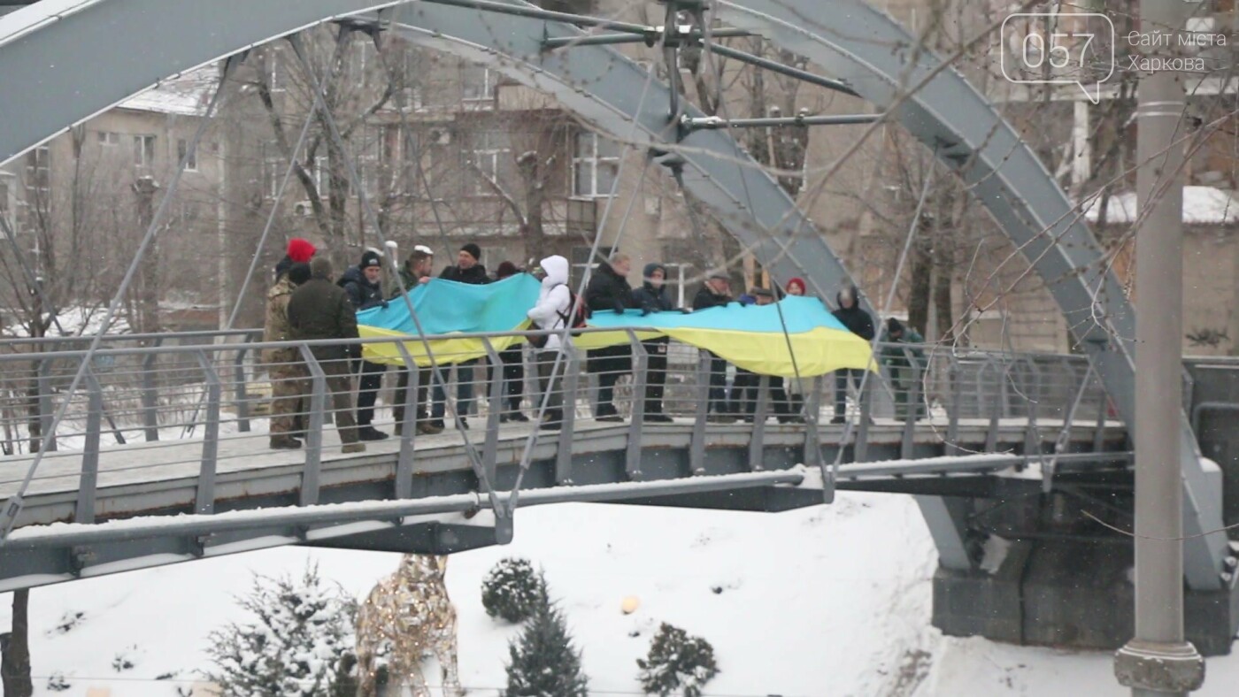 Сегодня харьковские активисты создали цепь единства и развернули флаги Украины и ВСУ, чтобы напомнить о важном национальном празднике