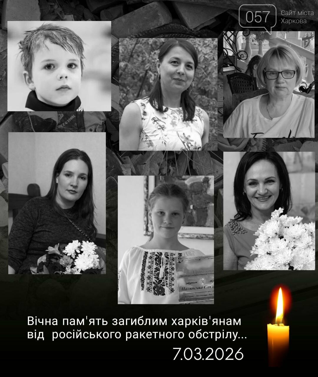 Три тела находятся на идентификации, тела семи погибших отдали родным для погребения. Также под завалами дома на Академика Проскуры в Харькове после российского ракетного удара могут находиться тела 4 человек. 9 марта в Харькове – день траура.