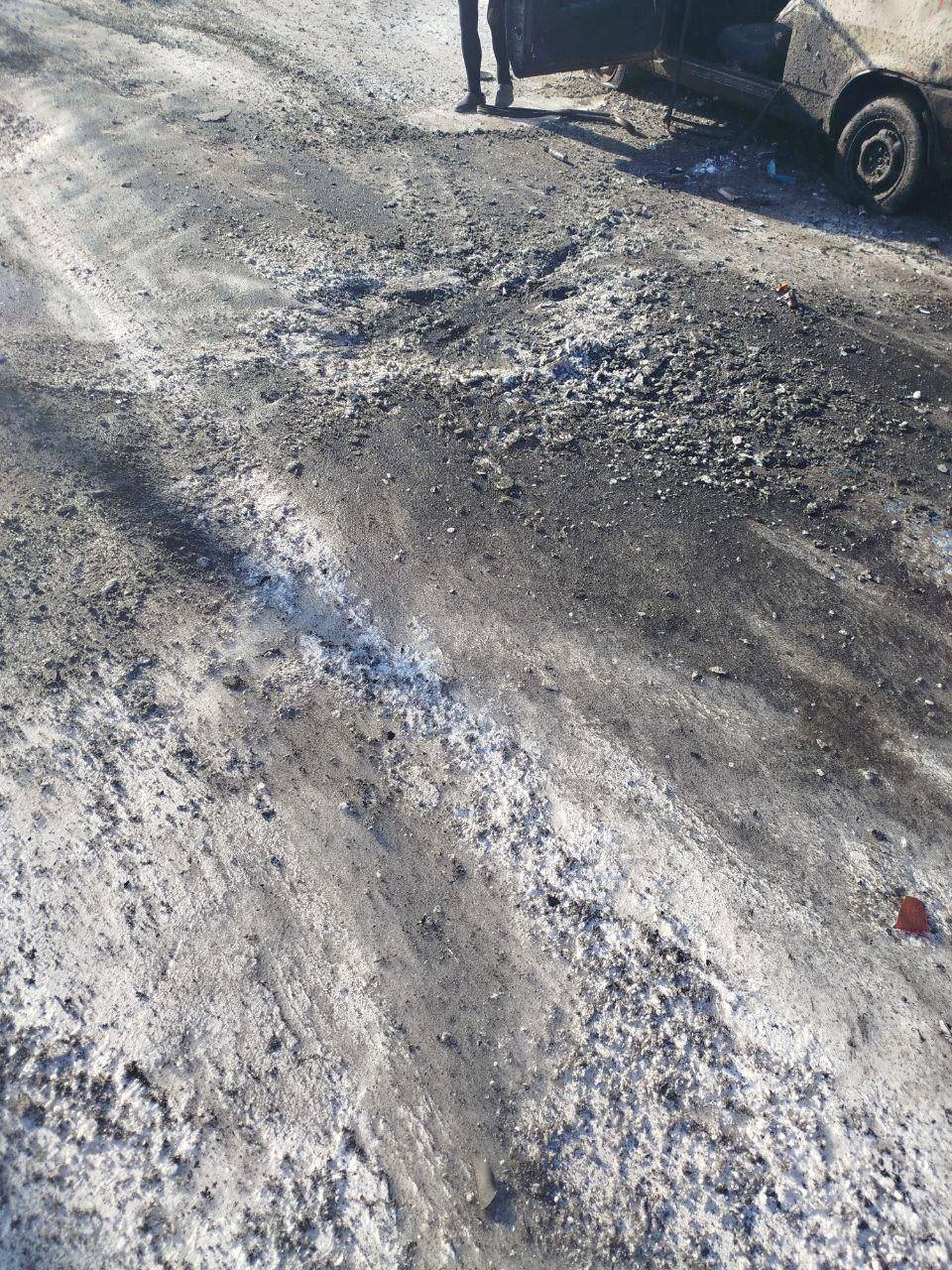 Попадание произошло в дорожное полотно. При этом был поврежден гражданский автомобиль, а также остекление окон в двух частных домах.