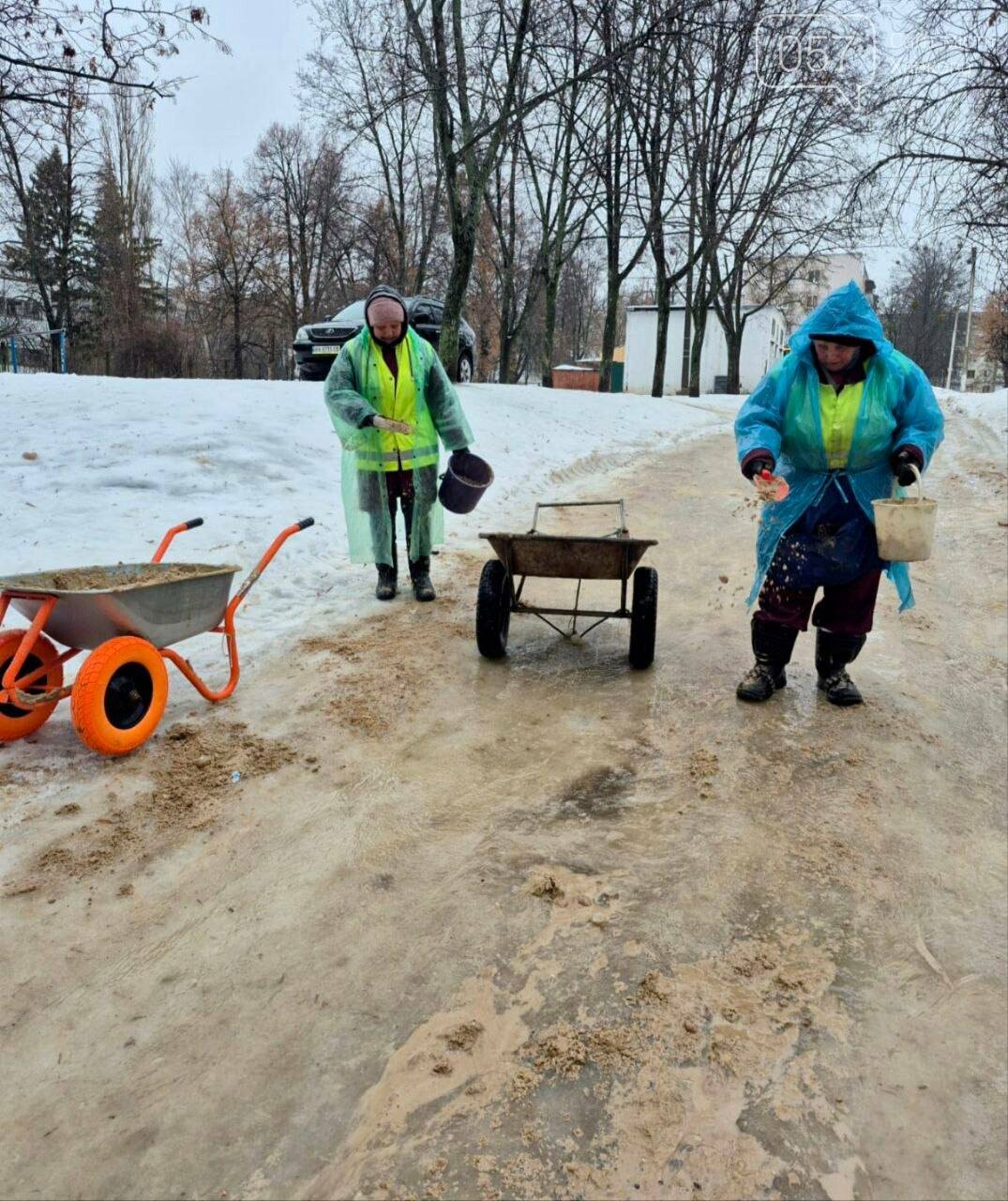 В городе коммунальщики устраняют последствия оттепелей на дорогах города и во дворах многоквартирных домов, убирают остатки льда, талый снег и посыпают опасные места противогололедными материалами.
