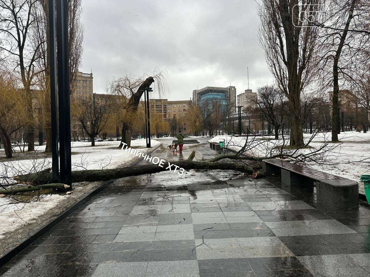 Но сильный ветер ломает деревья – в центре Харькова уже произошел древопад. Полиция и коммунальщики просят не оставлять машины под деревьями, осторожно ходить мимо, учитывая возможное падение веток и гололед.