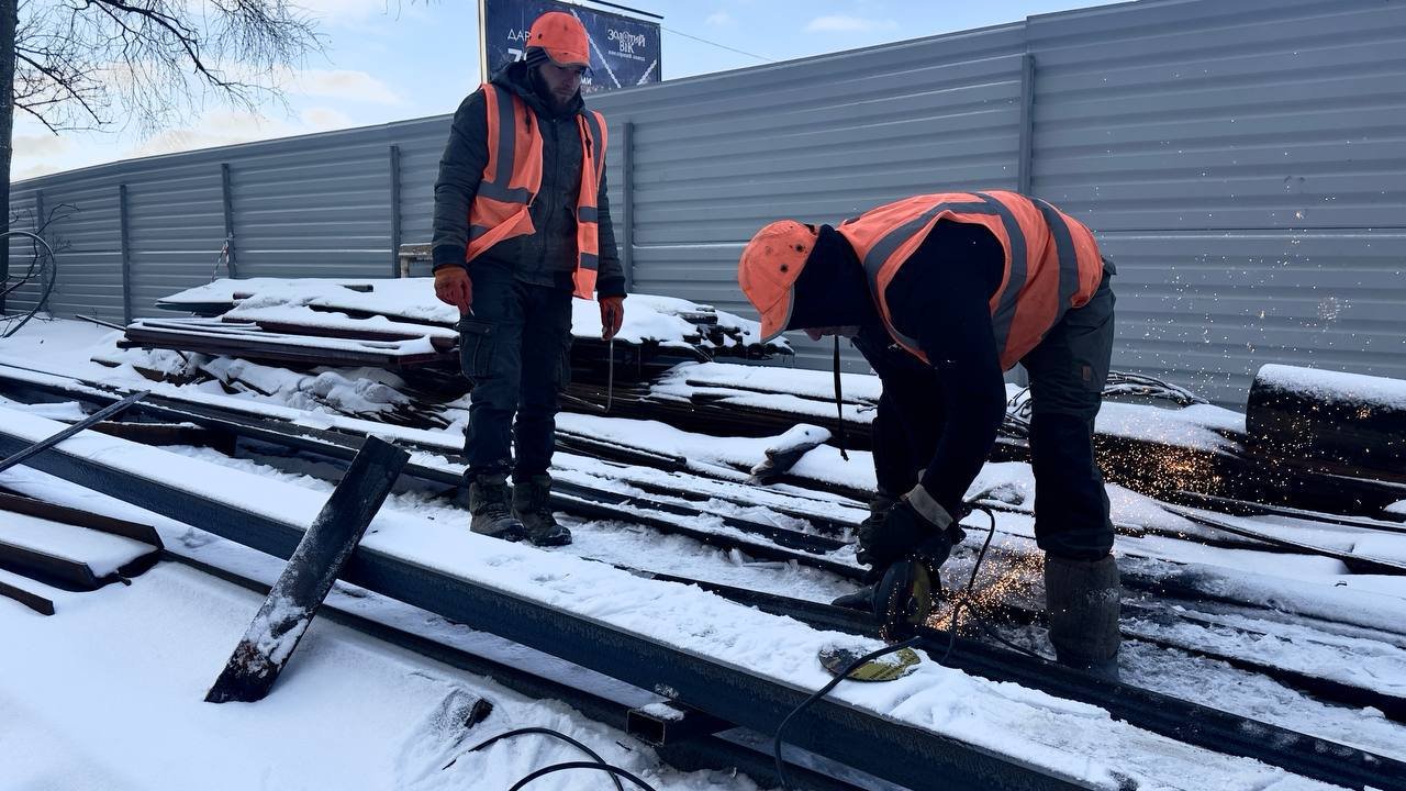 Также строители демонтируют поврежденные балконные ограждения и монтируют металлический каркас для дальнейшей отделки фасадной плитой.