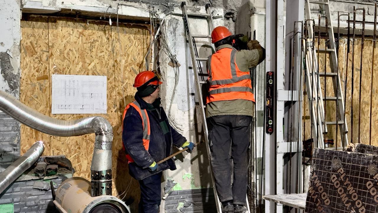 Сейчас идет восстановление внутренних перегородок и подготовка к бетонированию. Параллельно производится замена окон.