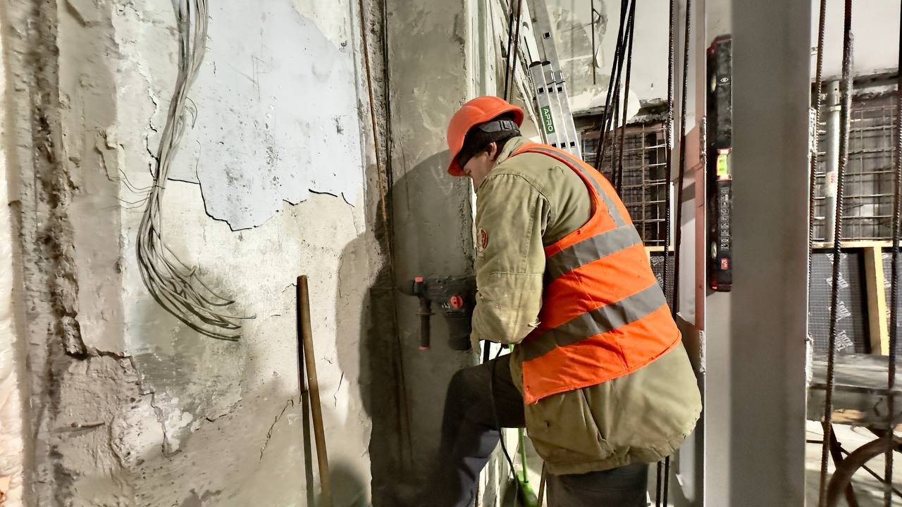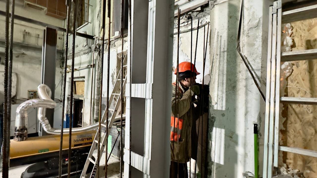 После этого специалисты начали восстанавливать стены и плиты перекрытия.