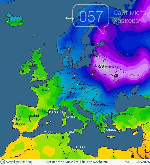 Ночью, кроме Закарпатья и южной части страны, температура упадет до минус 20-27 градусов, в Киевской, Черниговской, Житомирской, Ровенской, Сумской, Полтавской и Харьковской областях, а в Киеве – до минус 20-25 градусов. Днем прогнозируется минус 15-22 градусов мороза.