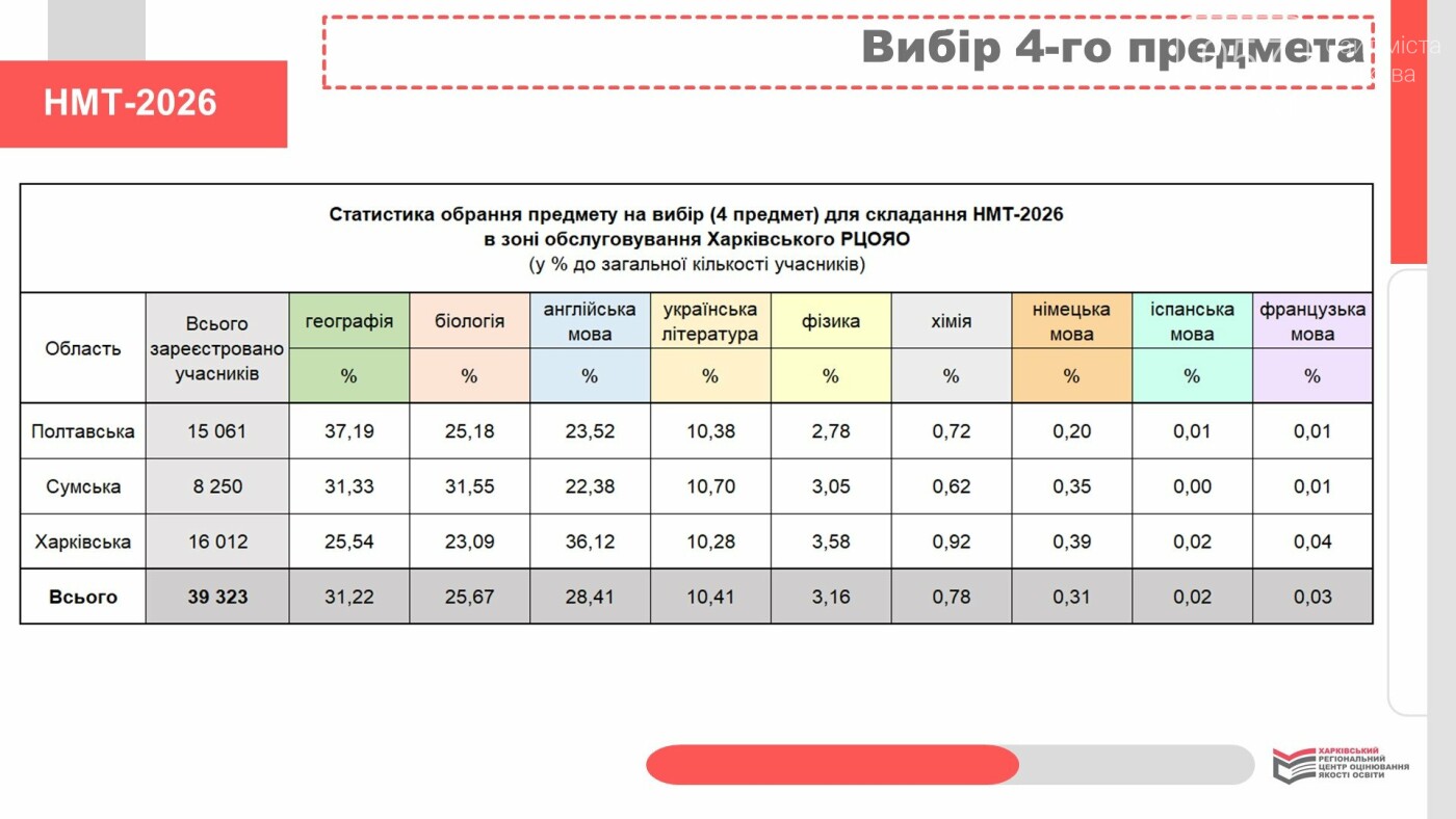 В Харьковской области в этом году зарегистрировали 16 012 участников НМТ. Большинство – 36,12% четвертым предметом выбрали английский язык.