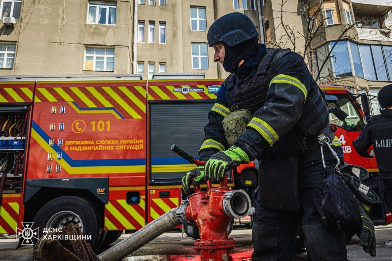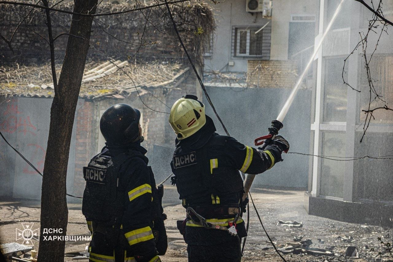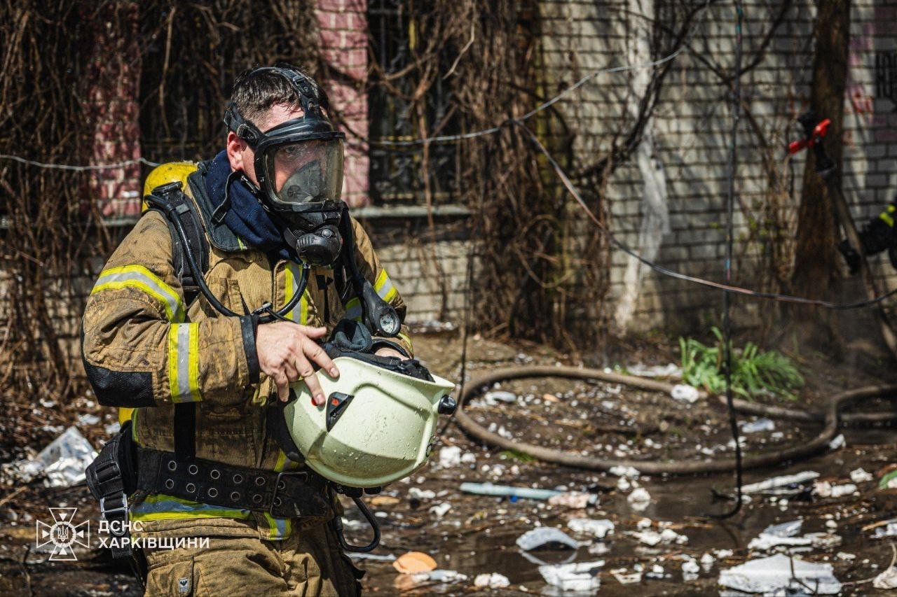 Трехэтажное здание в огне: спасатели показали последствия атаки на Харьков, – ФОТО