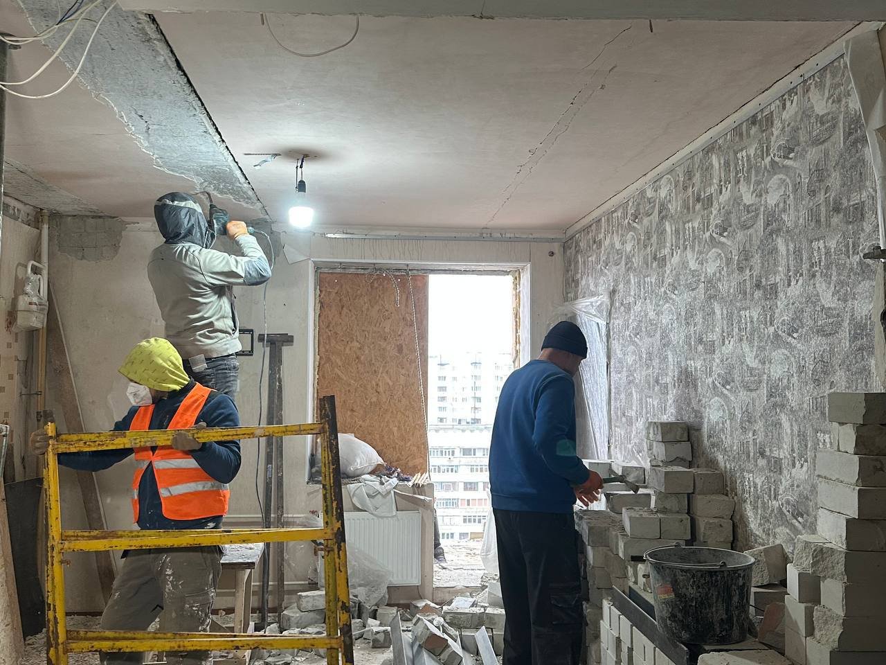 На Северной Салтовке восстанавливают жилищный фонд, поврежденный в результате ударов оккупантов по городу.