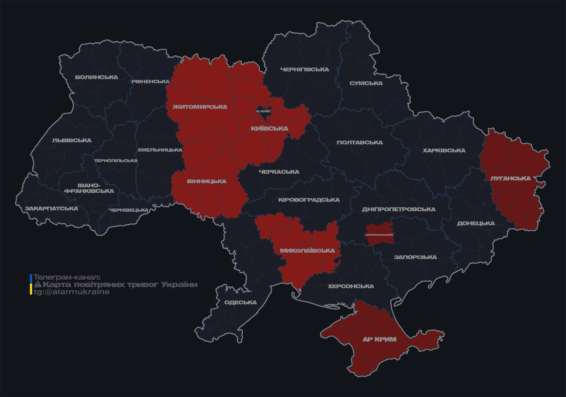 По состоянию на 02:02 карта воздушных тревог выглядит так: