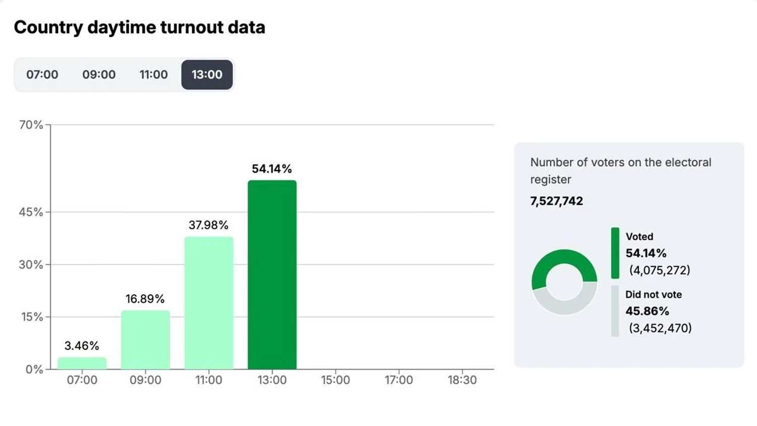 Такий показник перевищує виборчу явку, що була у 2022 році, на 10%.